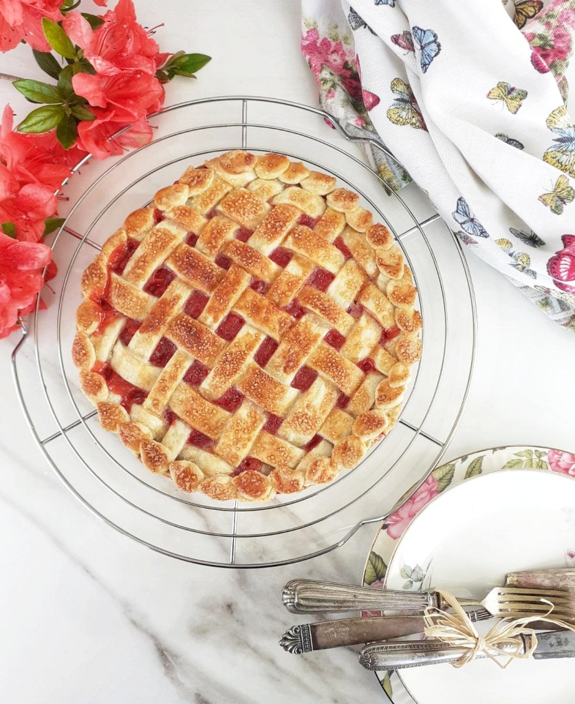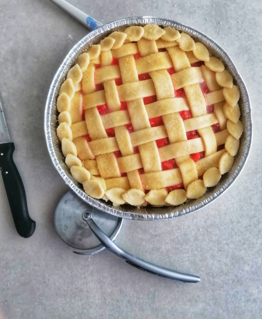 Riprendiamo il nostro panetto e dividiamo la pasta brisè in due. Stendiamo una parte e foderiamo uno stampo da 20/22 cm. Lo copriamo con un’altra teglia e facciamo cuocere in forno a 180 gradi per 40 minuti. Terminato il tempo di cottura, riprendiamo la nostra base e la farciamo con le fragole. Decoriamo a piacere con il restante impasto. Spennelliamo la superficie con un pochino di albume e latte oppure se preferite con un tuorlo e latte, cospargiamo con lo zucchero di canna e inforniamo a 180° per 40 minuti.