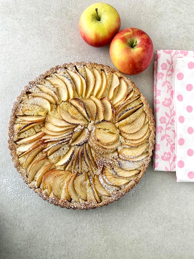 Le torte di mele hanno sempre un certo effetto su di noi. Abbiamo tanti ricordi piacevoli legate ad esse e alla nostra infanzia. Ogni versione riesce a catturare la nostra attenzione, ogni variante ci dona gioia al primo morso. E cosa fare quando si viene colte all’improvviso da una voglia di crema frangipane e allo stesso tempo, una voglia di crostata di mele?! Si prepara una TORTA FRANGIPANE ALLE MELE, semplice!
