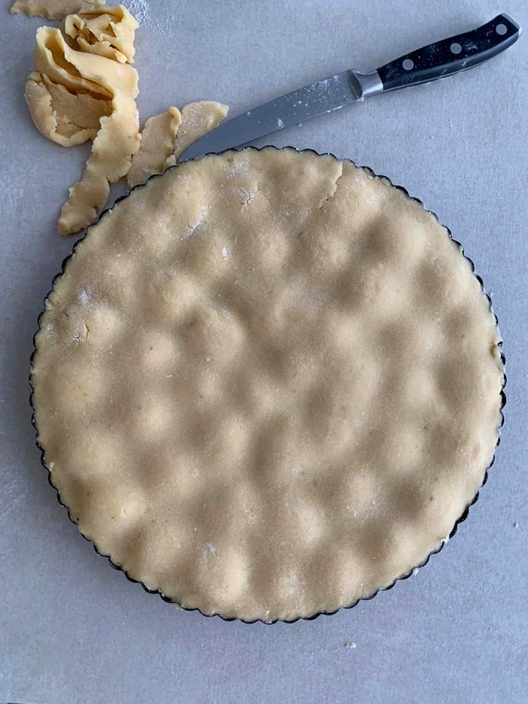 Prepariamo la frolla mettendo nel robot da cucina tutti gli ingredienti, formiamo un panetto e lasciamolo riposare in frigo per tutta la notte o per almeno due ore.