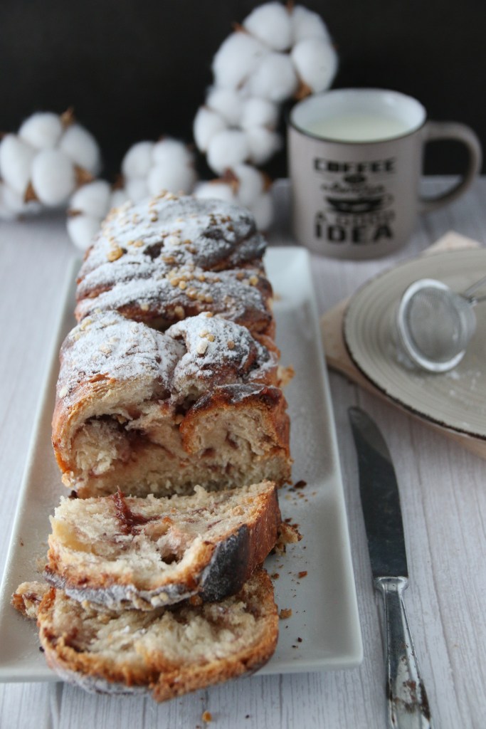 Oramai conoscete la nostra passione per i lievitati e quando ci viene voglia di panbrioche e di sperimentare nuove ricette, usando alternative senza uova e senza lattosio. Non ci resta che soddisfare le nostre idee. Abbiamo scoperto questa ricetta che ci ha incuriosito sul blog di Monica @lalunasulcucchiaio e abbiamo voluto provarla.