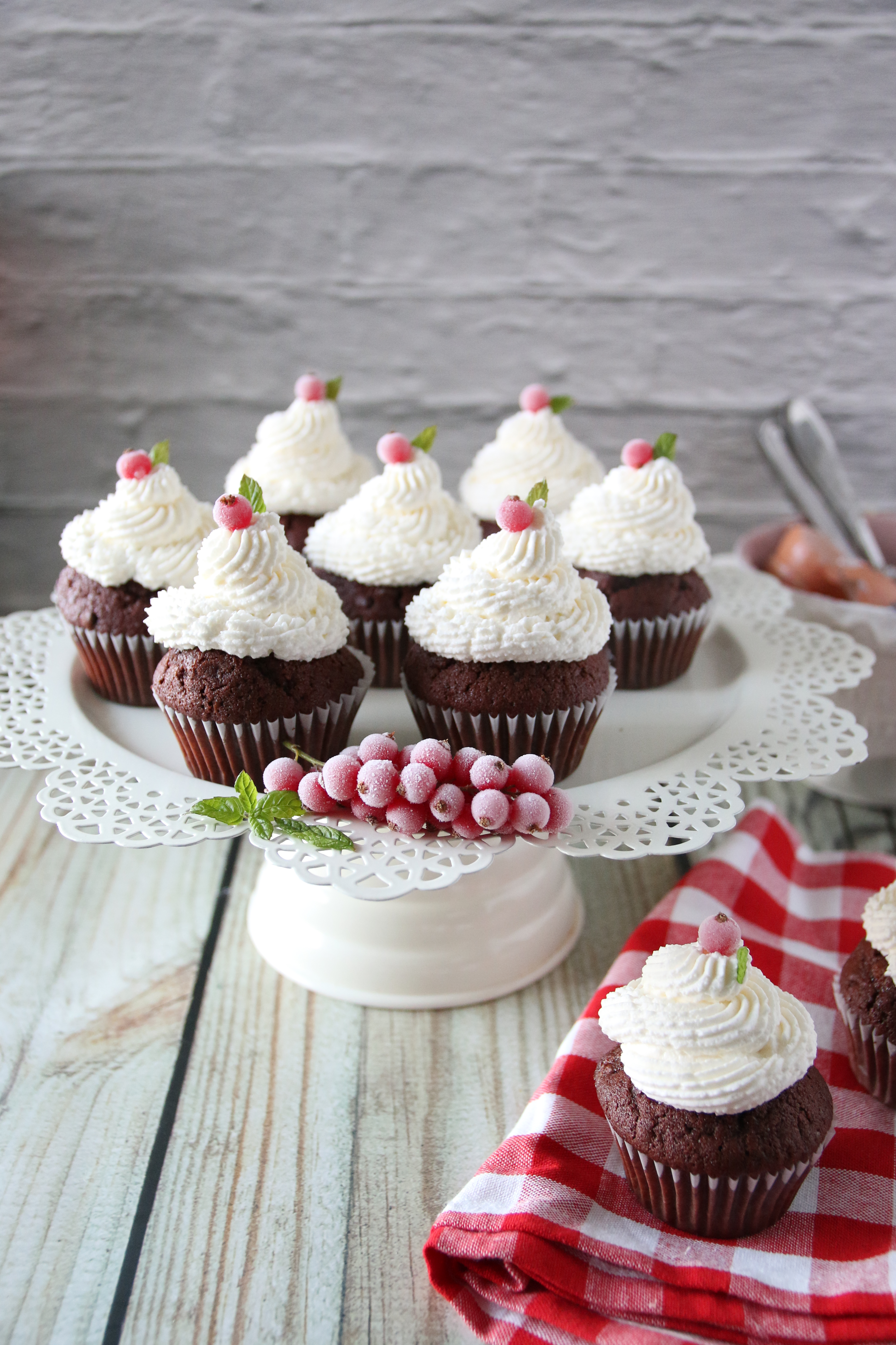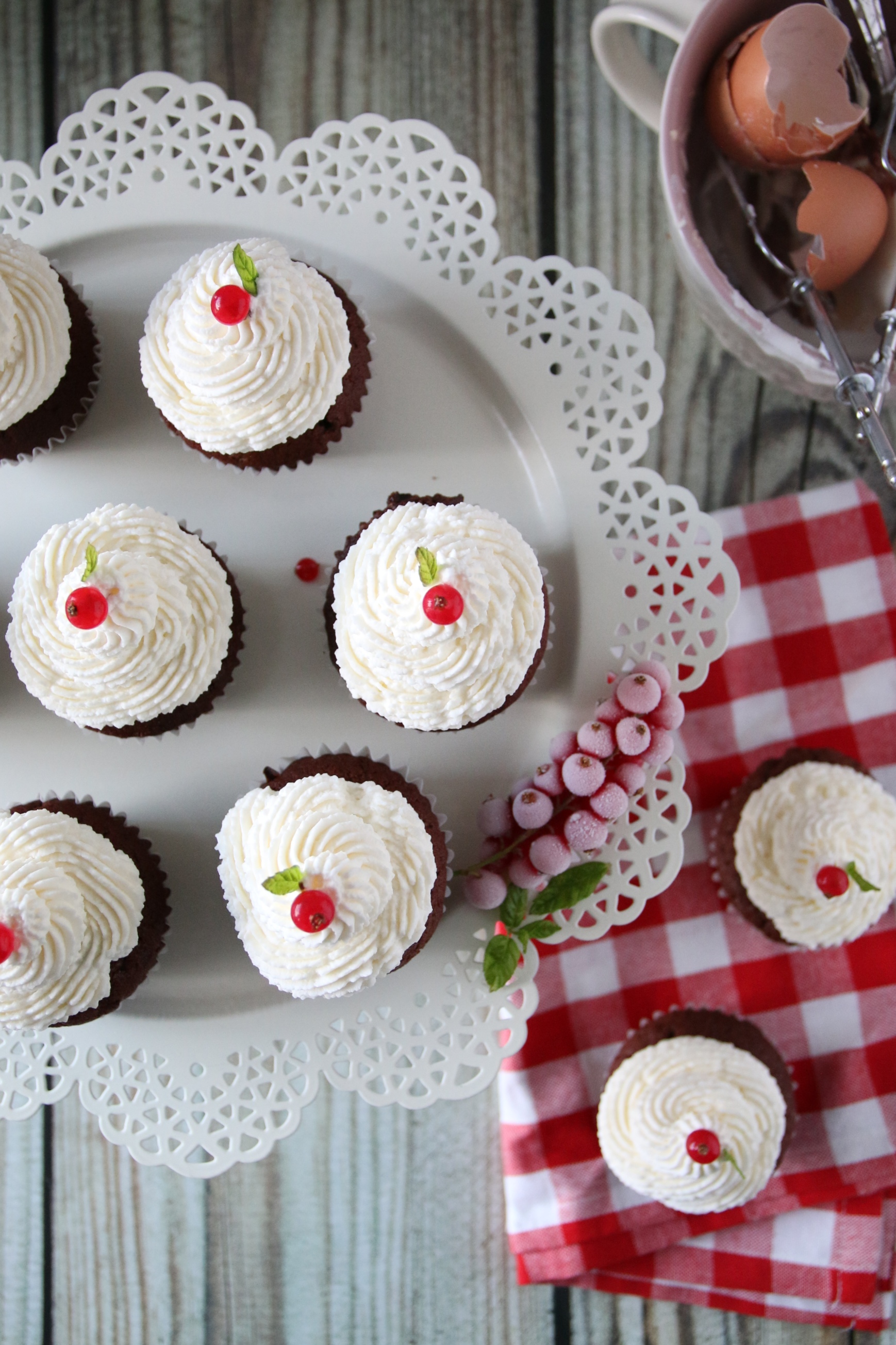 Una volta freddi decoriamoli a piacere. Noi abbiamo optato per un topping di mascarpone e panna ottenuto mescolando insieme 100ml di mascarpone, 100 ml di panna e 80 g di zucchero a velo, fino a ottenere una crema soda.