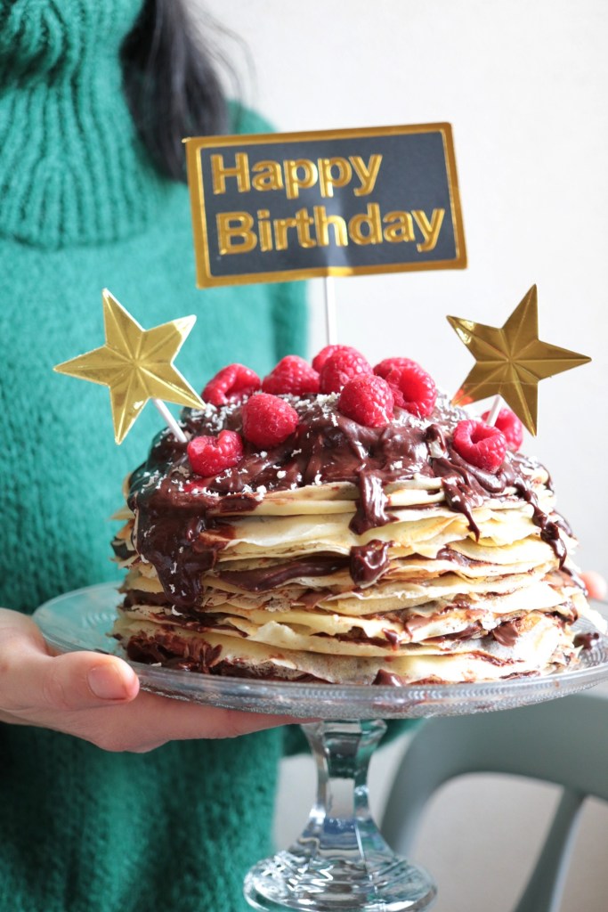 Le nostre crepes hanno un diametro di 15 cm, a seconda della grandezza delle crêpe e dell’altezza della torta che volete realizzare, potete dimezzare o raddoppiare le dosi.