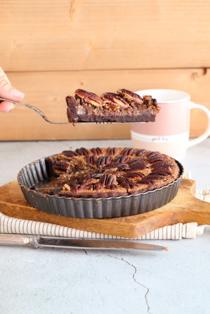 È un dolce tipicamente autunnale lo sappiamo, ma complice l’abbondanza di noci pecan e sciroppo d’acero nelle nostre dispense, ci è venuta una gran voglia di realizzarla.