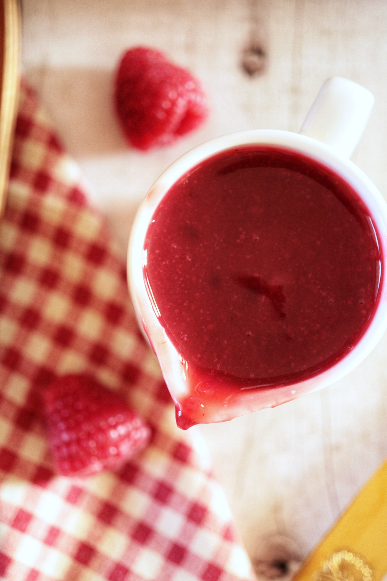 Ci occorreranno 500 g di lamponi, 250 g di zucchero semolato e il succo di mezzo limone.