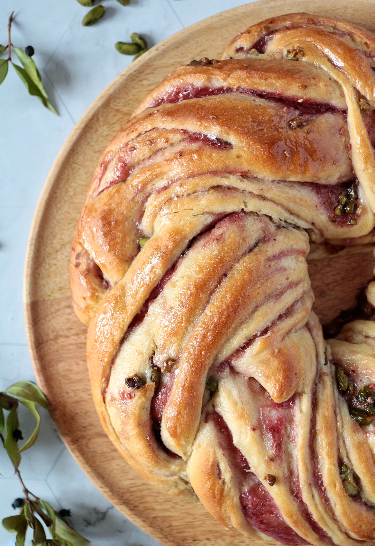 È così che iniziamo il nuovo anno e gli diamo il benvenuto con un BABKA AI LAMPONI E PISTACCHI.