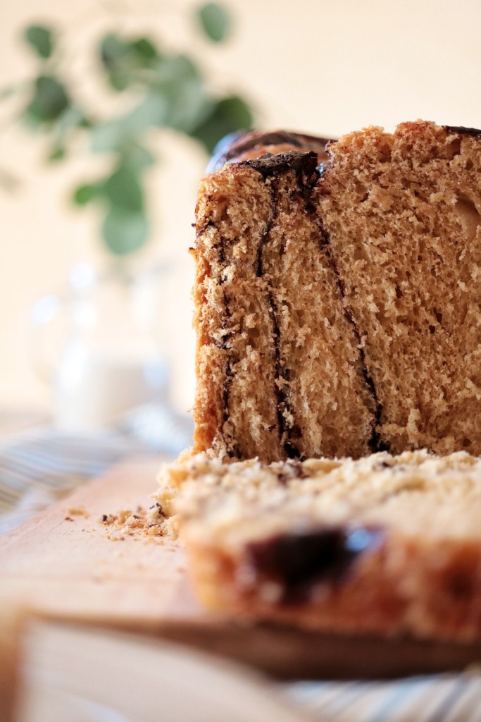 Passiamo subito alla pratica e ci gustiamo con gioia una super fetta di PANBRIOCHE ALLA LIQUIRIZIA CON CREMA AL CIOCCOLATO FONDENTE.