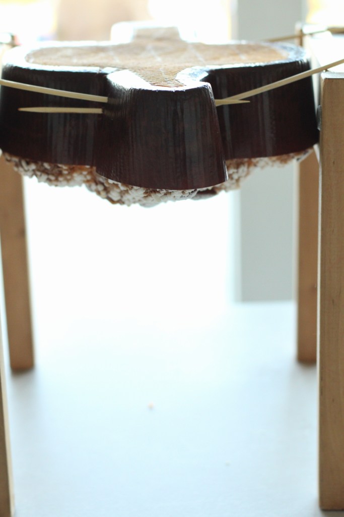 Una volta cotta la nostra colomba, la tiriamo fuori dal forno, la infilziamo con degli stuzzicadenti e la facciamo raffreddare capovolta.