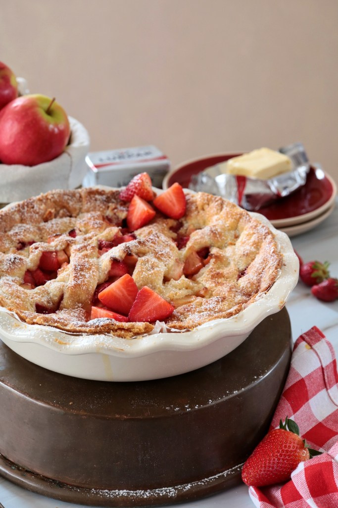 Adoriamo le pie e tutte le sue sfaccettature ed oggi vi proponiamo una versione dolce e molto profumata, PIE CON FRAGOLE, MELE E CARDAMOMO .