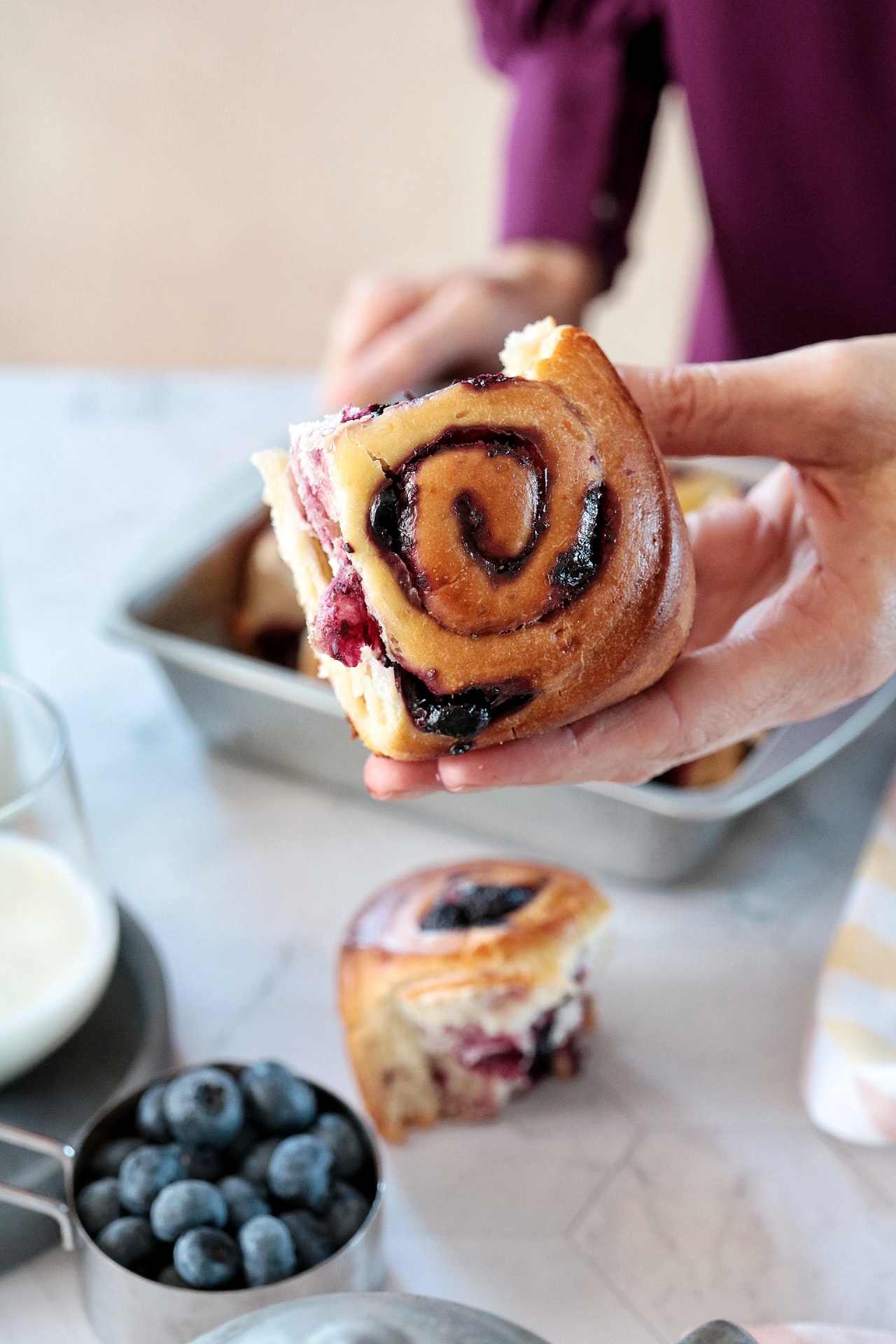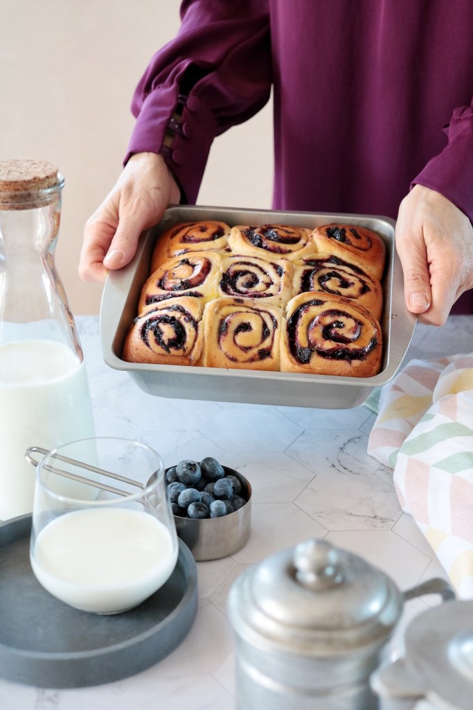 Il ripieno di mirtilli rende questi rolls speciali.