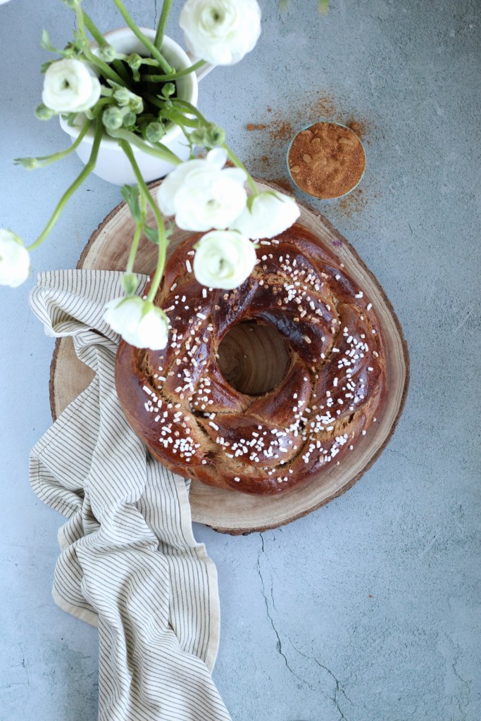 La CORONA DI PANBRIOCHE ha un impasto soffice e profumato, arricchito dallo zucchero di dattero, che dona quel tocco leggermente esotico, che non guasta .