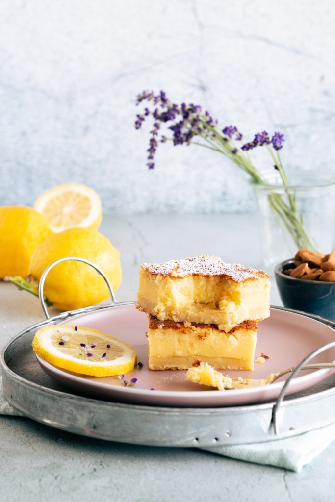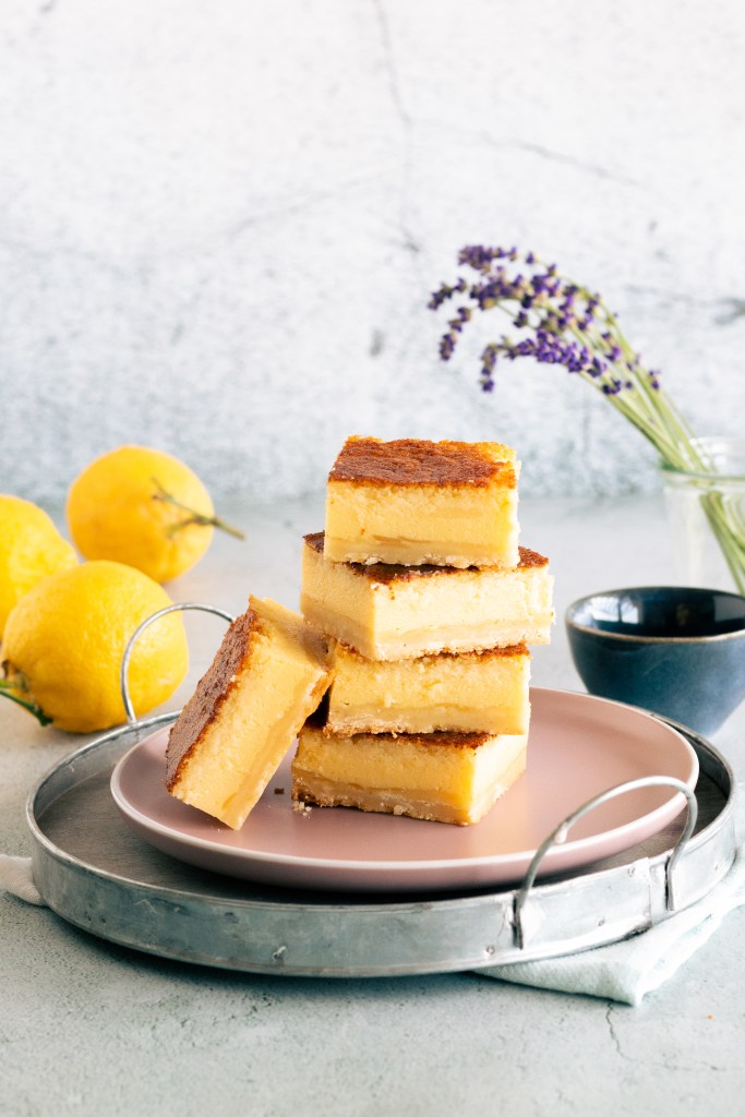 Tre strati di pura bontà: una base di frolla, un morbido ripieno al limone ed una crosticina croccante, che urlano estate da ogni angolazione.