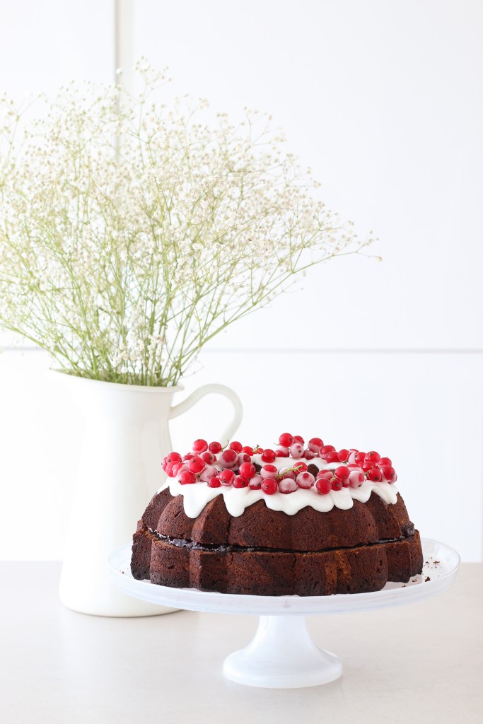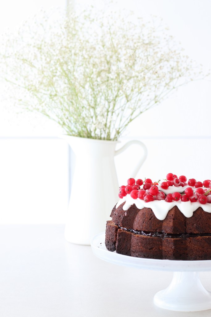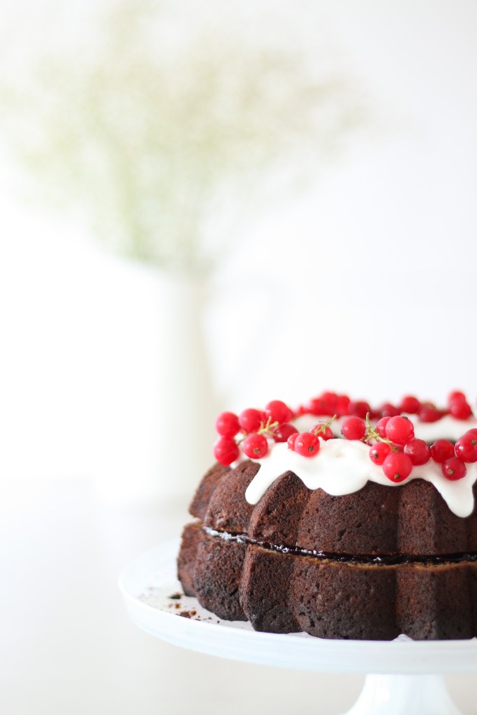 Abbellite la vostra bundt cake come meglio credete, noi abbiamo optato per dei ribes dal colore rosso brillante!