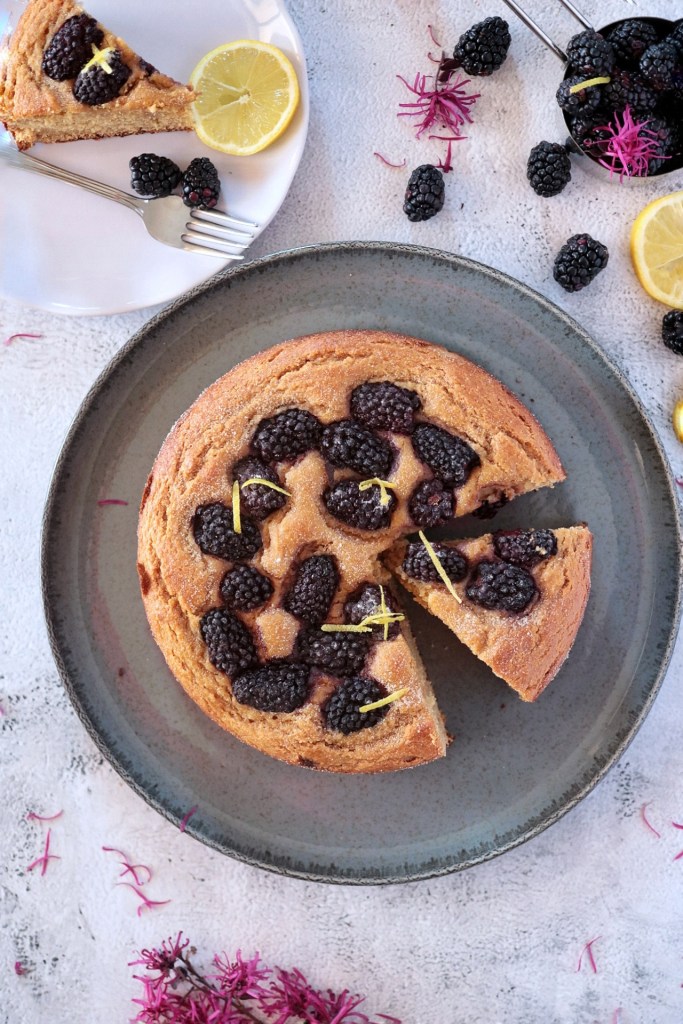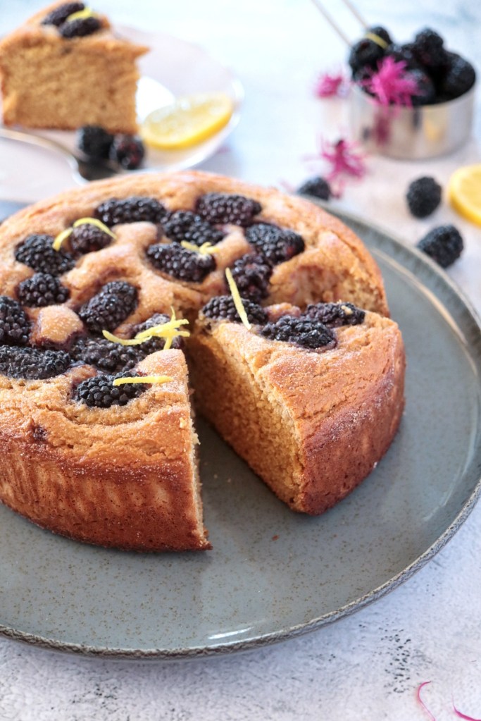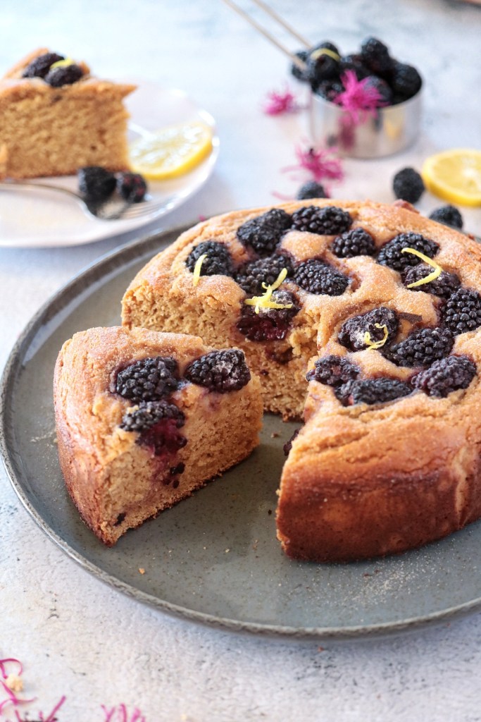 Niente burro né olio per questa soffice torta impreziosista da tante succose more!