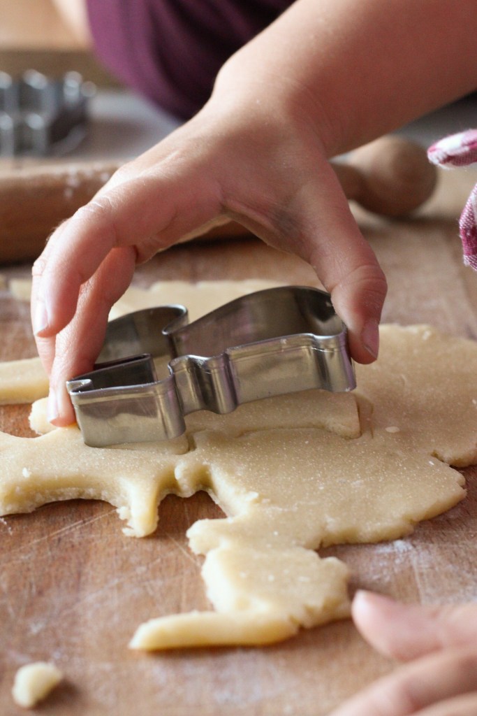 Con delle formine, taglimo i biscotti e inforniamoli a 180° – 200° fino a doratura.