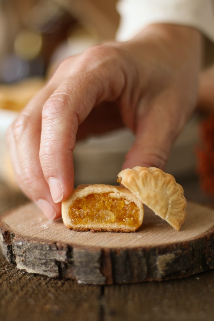 Ogni famiglia ha la sua ricetta segreta per il ripieno dei mooncake, noi vi proponiamo la versione di Mandy @soupedup_recipes, con una farcia di un’insolita confettura di ananas, che all’assaggio ci ha lasciate senza parole per il suo gusto travolgente.