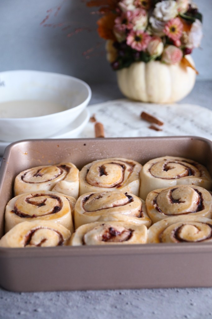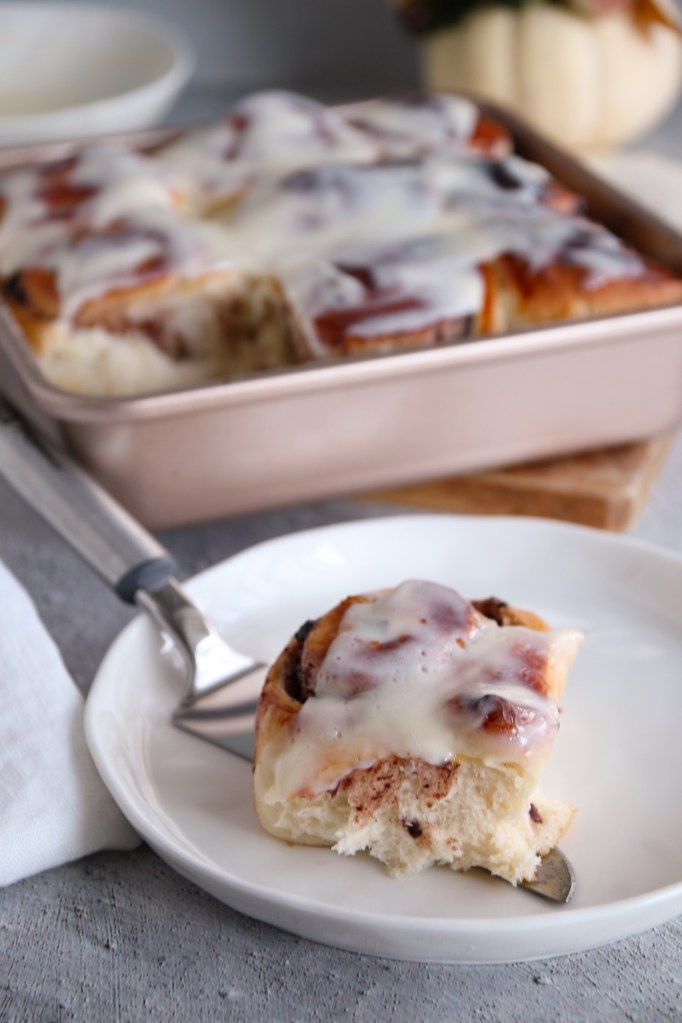 Una volta cotto il nostro cinnamon roll cospargiamo la superficie con la crema e serviamo.